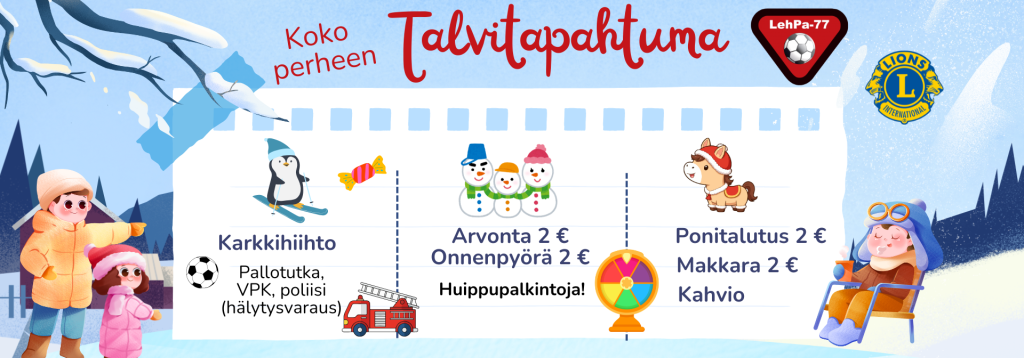 - Koko perheen talvitapahtuma 14.3.Lions Club Kontiolahti/Höytiäinen ja Lehmon Pallo järjestävät koko perheelle tarkoitetun talvitapahtuman…