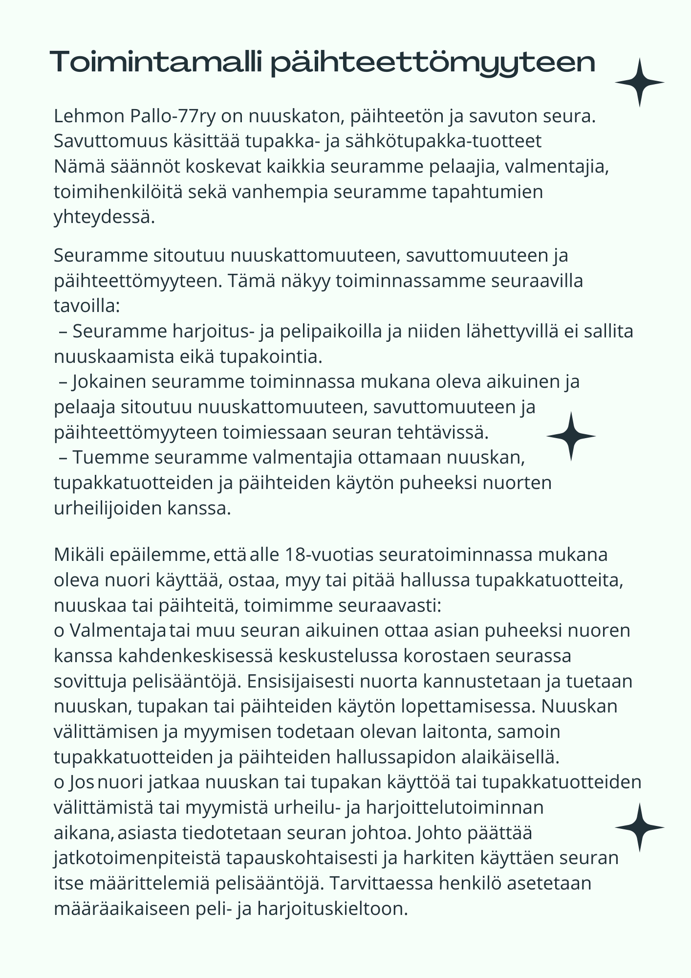 Toimintamalli päihteettömyyteen